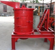 物料由機器上部垂直落入高速旋轉的葉輪內,在高速離心力的作用下,與另一部分以傘狀形式分流在葉輪四周的物料產生高速撞擊與粉碎,物料在互相撞擊后,又會在葉輪和機殼之間以物料形成渦流多次的互相撞擊、摩擦而粉碎,從下部直通排出,形成閉路多次循環,由篩分設備控制達到所要求的成品粒度。